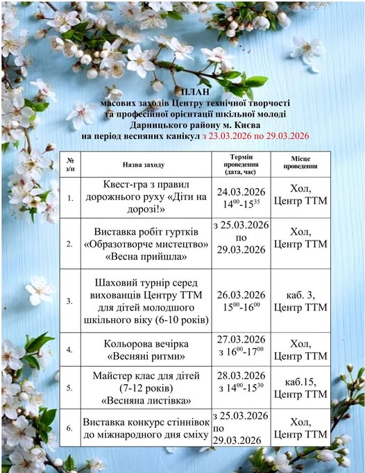 Центр технічної творчості молоді запрошує на роботу керівників гуртків науково-технічного напряму, математики, шахи, рохома іграшка, інформаційні технології, культорганізатора.